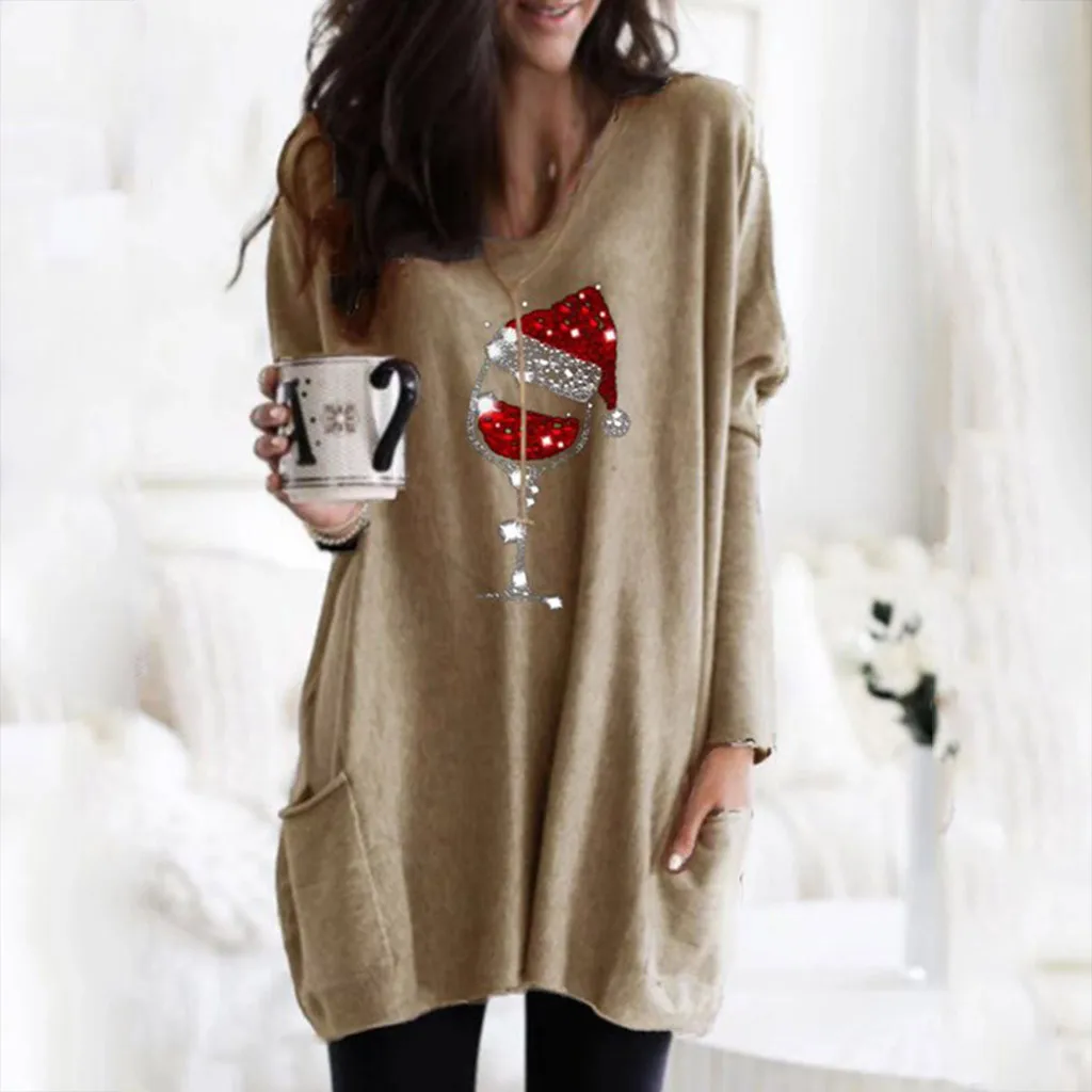 Женская Повседневная Блузка с длинным рукавом и рождественским принтом