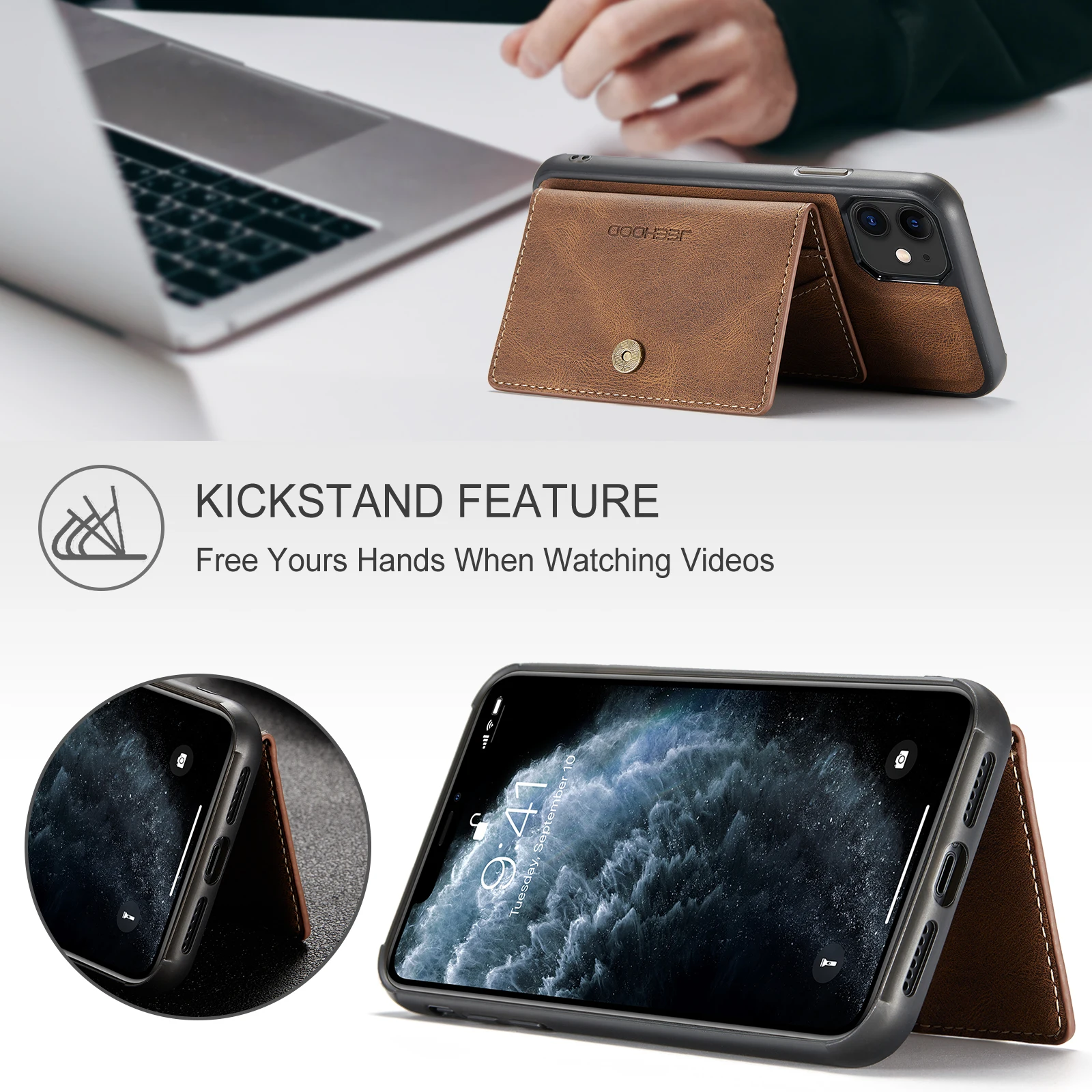 Features4ard holder and phone case can be separated and sucked