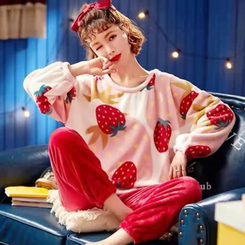 Пижама женская зимняя фланелевая с длинным рукавом, утепленная, бархатная, Коралловая, флисовая, милая, осенне-зимняя, домашний костюм для женщин