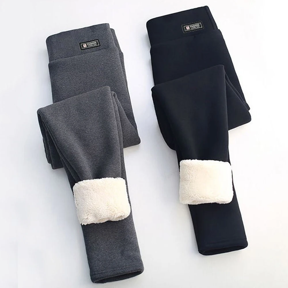 Black warm pants winterskinny thick velvet wool fleece girls leggings