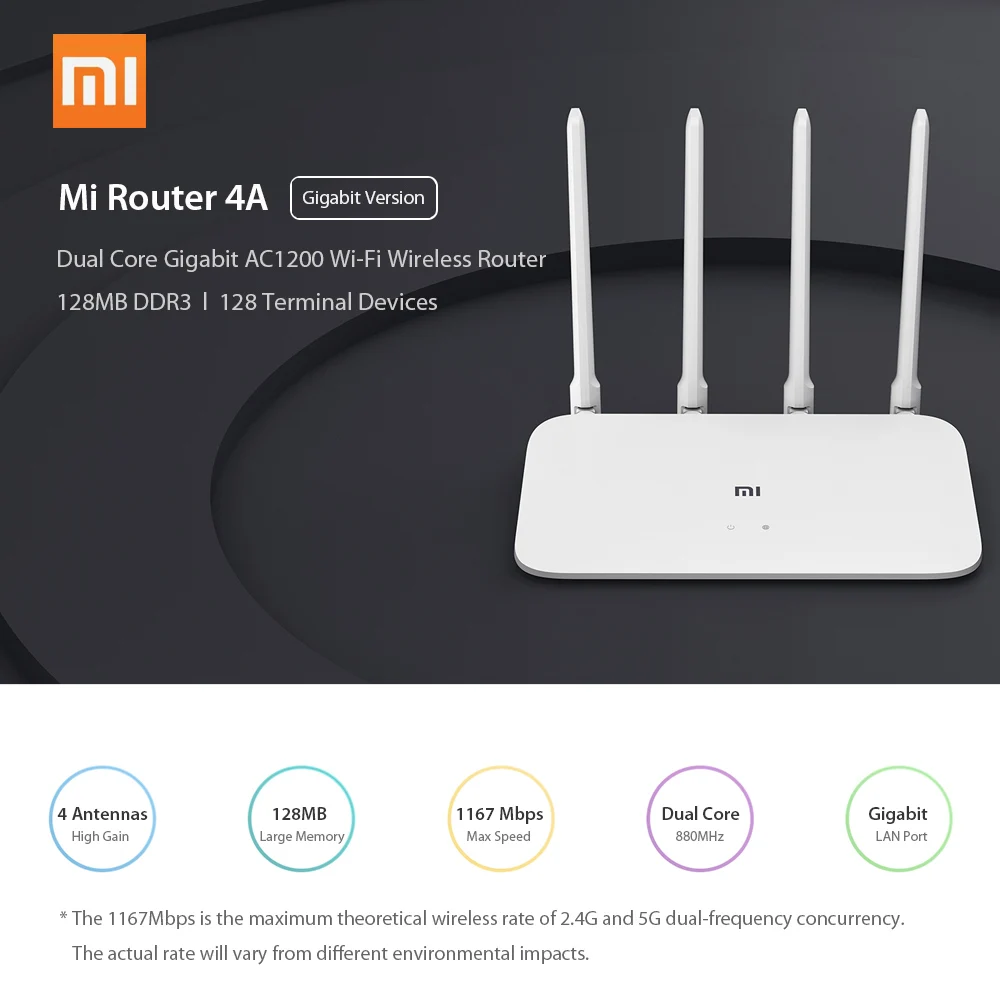 Роутер Xiaomi Mi 4A4A гигабитная версия 100M1000M 2,4 ГГц 5 ГГц Wi-Fi 1167 Мбитс Wi-Fi ретранслятор 128 Мб DDR3 4 антенны сетевой расширитель