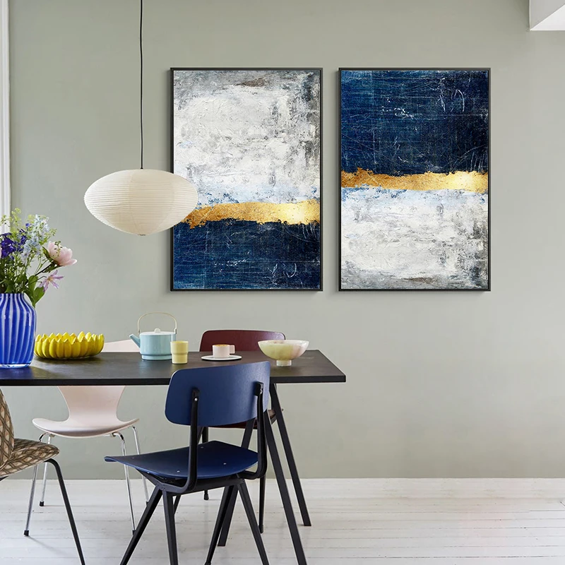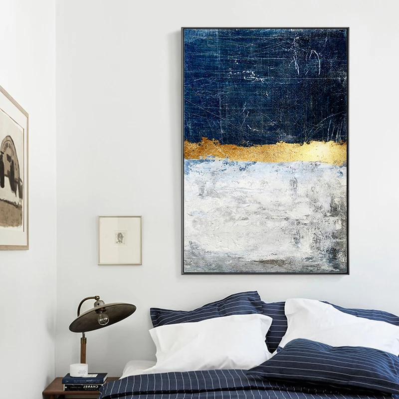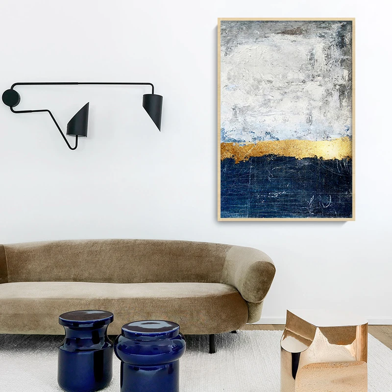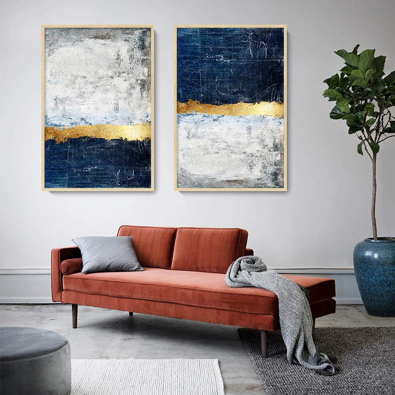 Геометрическая абстрактная Настенная картина золотисто-синяя Роскошная Современная Картина на холсте скандинавские постеры и принты Декор для дома и гостиной