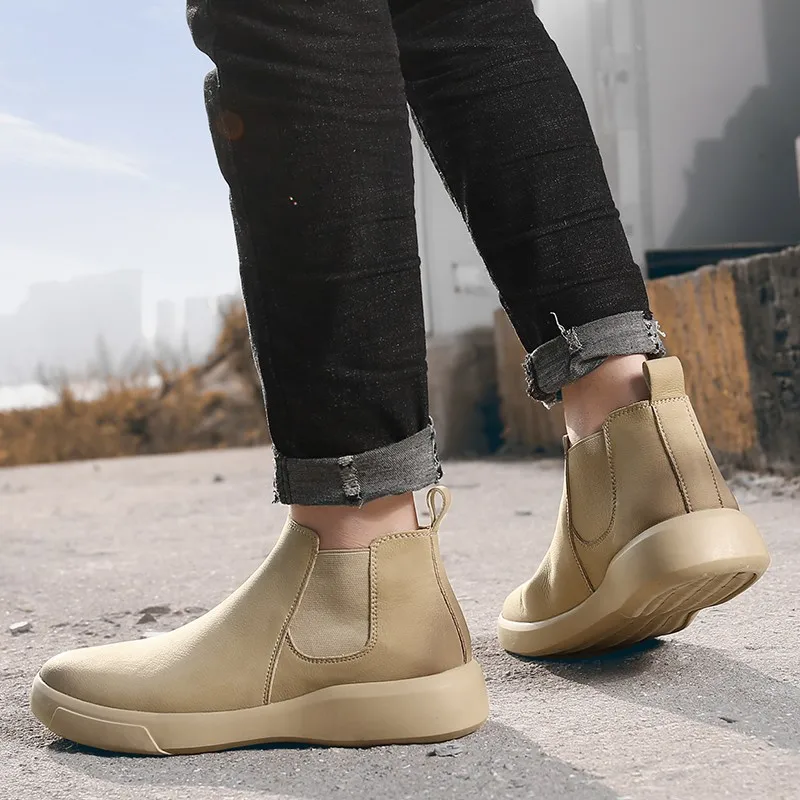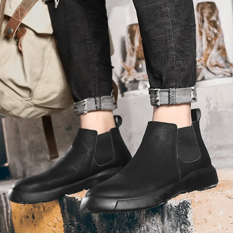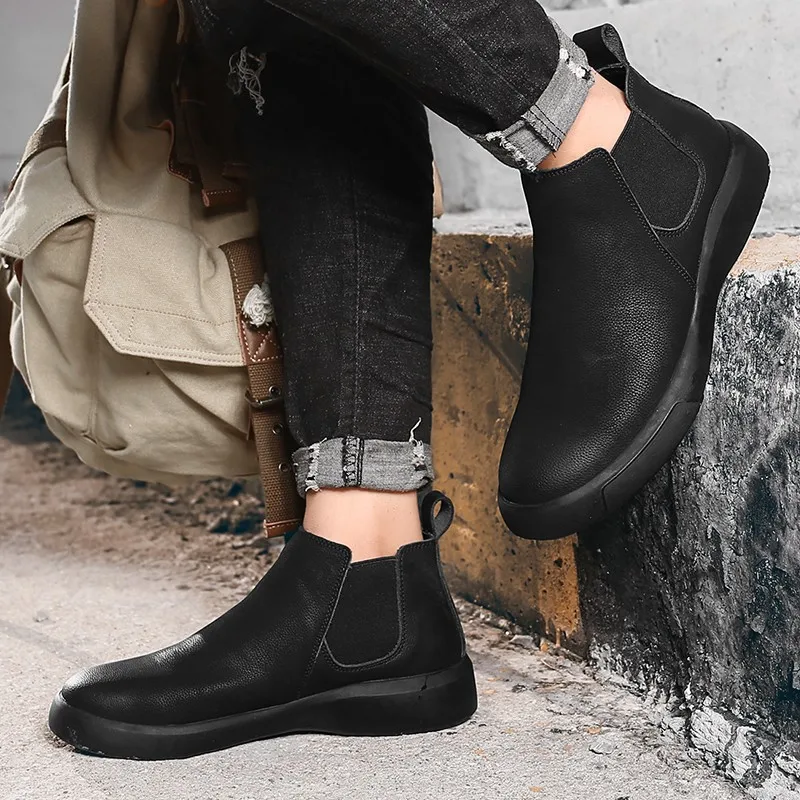 Мужские ботинки челси из натуральной кожи, ботильоны, зимние плюшевые теплые мужские ботинки, водонепроницаемая повседневная обувь, британская Классическая искусственная кожа
