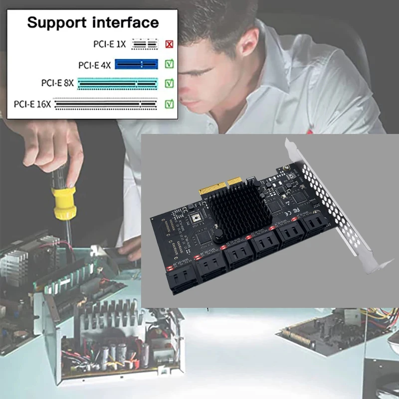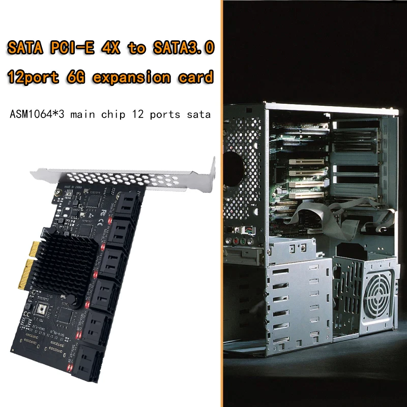 Адаптер для майнинга Chi a, 12 портов SATA PCIE 4X, PCI Express X4 на SATA 3,0, 6 ГБ, контроллер, плата расширения для настольного ПК