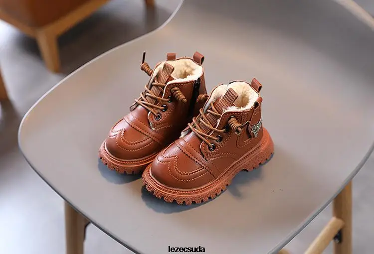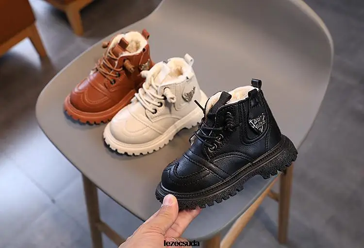 Детская повседневная обувь, Осень-зима, Ботинки Martin, модная кожа...