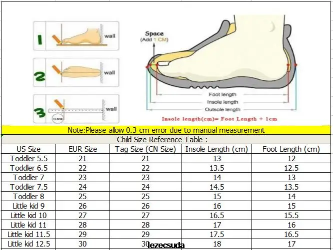 Поскольку все размеры детской обуви отличаются, при заказе детской обуви вы должны соответствовать нашим размерам и внутренней длине.