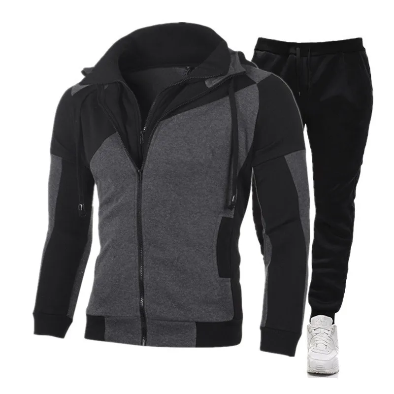 Мужской спортивный костюм из куртки с капюшоном и брюк, на молнии