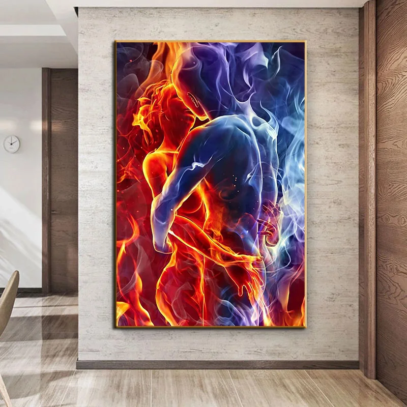 Картина на холсте любитель пламени и льда, абстрактная картина на стену для гостиной, декоративный постер и принты, объятие поцелуй