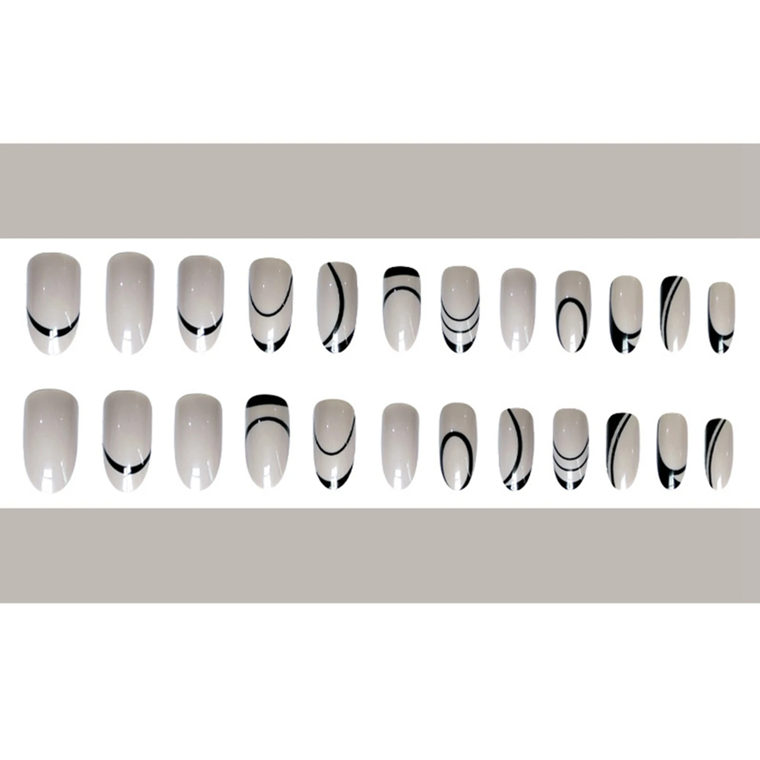 Накладные ногти средней длины, минималистичные черные линии для дизайна ногтей, накладные ногти с полным покрытием, акриловые Типсы для ногтей, искусственные ногти
