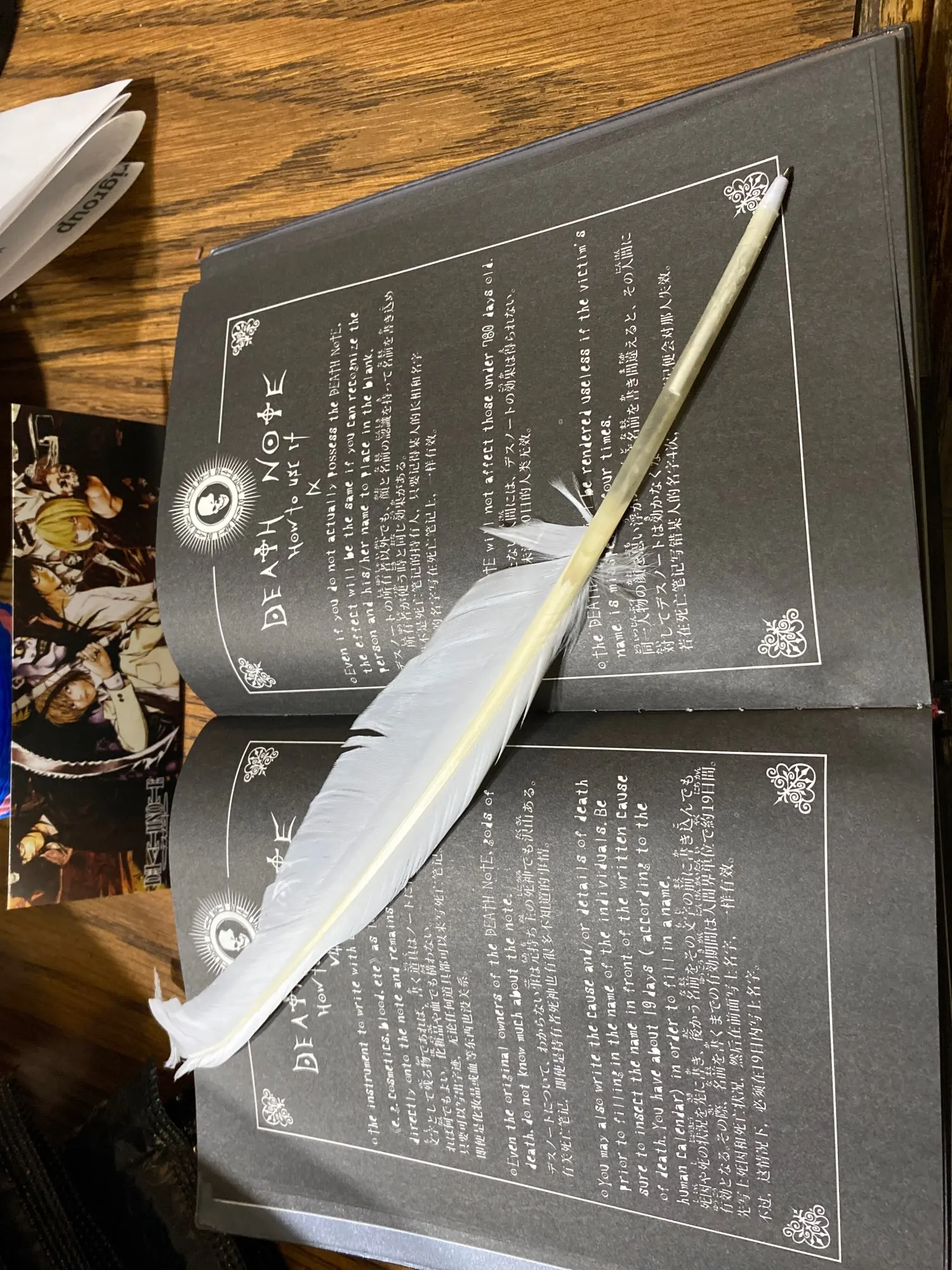Он пришел до того, как его доставка прибудет в следующий раз, я очень рад, что вы пришли с закладкой, а также немного огорчено, извините, я не получил все с ожерельем L, но это нормально, я получил перо закладку в самой книге, которая выглядит потрясающе, как