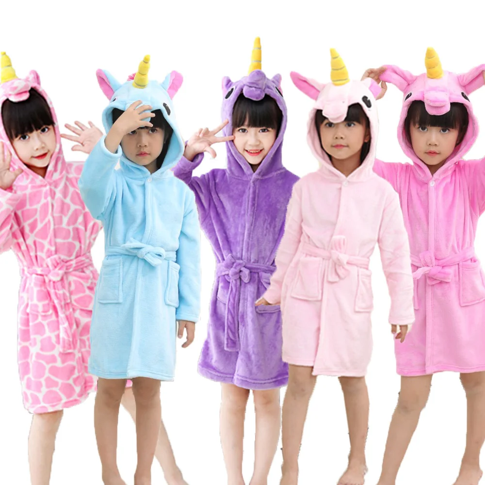 Новый модный детский халат с единорогом Детская Пижама с длинным рукавом зимняя детская пижама фланелевая мягкая Пижама для маленьких девочек домашняя одежда