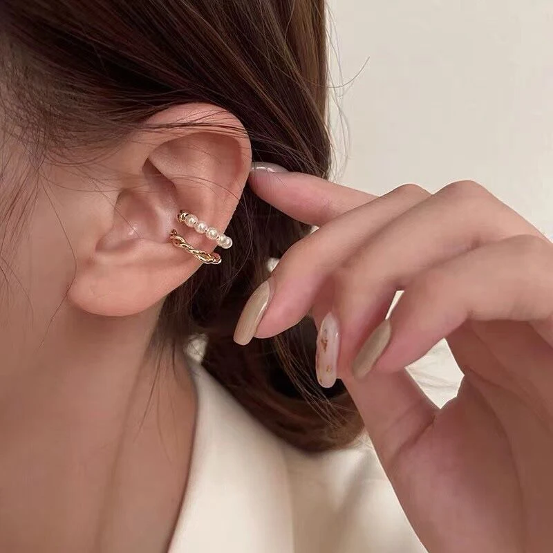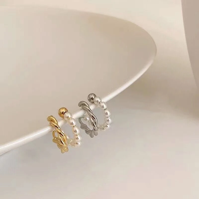 Корейские элегантные французские двухслойные зажимы для ушей с имитацией жемчуга, 1 шт., металлические зажимы для ушей без проколов, милые модные ювелирные украшения