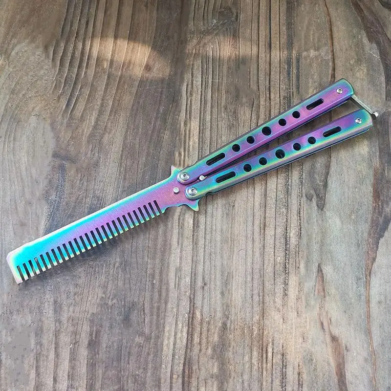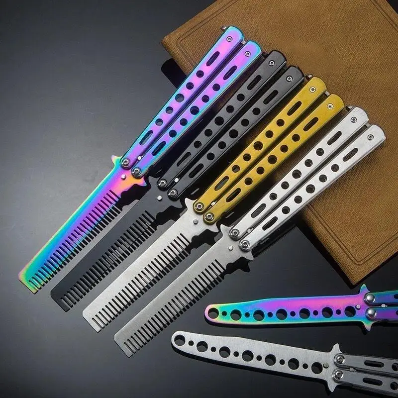 Складная расческа из нержавеющей стали тренировочный нож-бабочка расческа для бороды щетки для усов инструмент для укладки волос