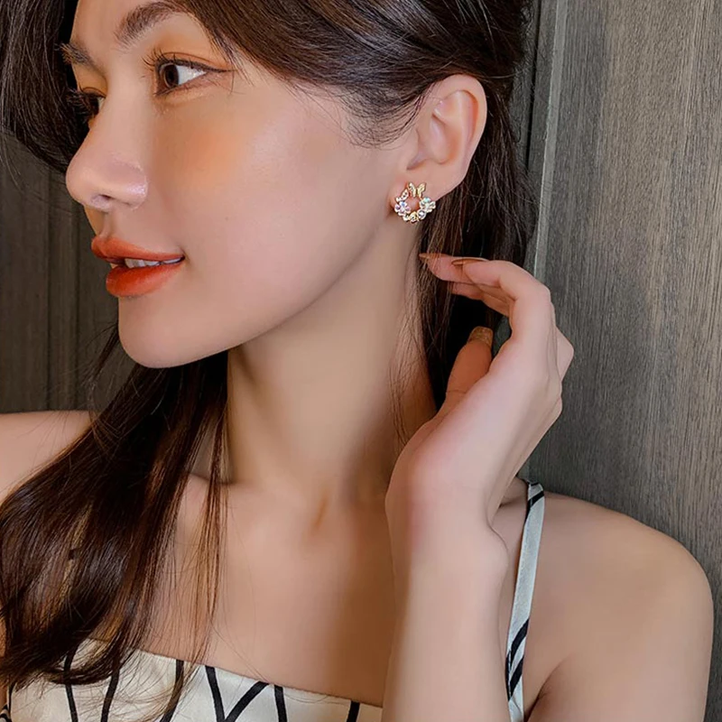 Серьги-гвоздики женские металлические, стразы, корейские, элегантные