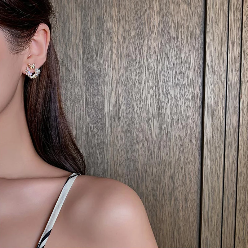 Корейские милые циркониевые серьги-гвоздики в форме бабочки для жен...