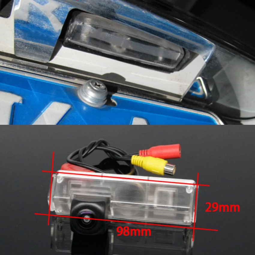Перед заказом, пожалуйста, убедитесь, что фото размера камеры одинаковое, расположение лампы номерного знака и желтый разъем RCA, чтобы проверить размер камеры вместе, чтобы избежать ошибок. (Если вы не уверены, пожалуйста, оставьте сообщение для сотрудников службы поддержки клиентов: Отправьте модель автомобиля и год + информацию о фото позиции лампы номерного знака)