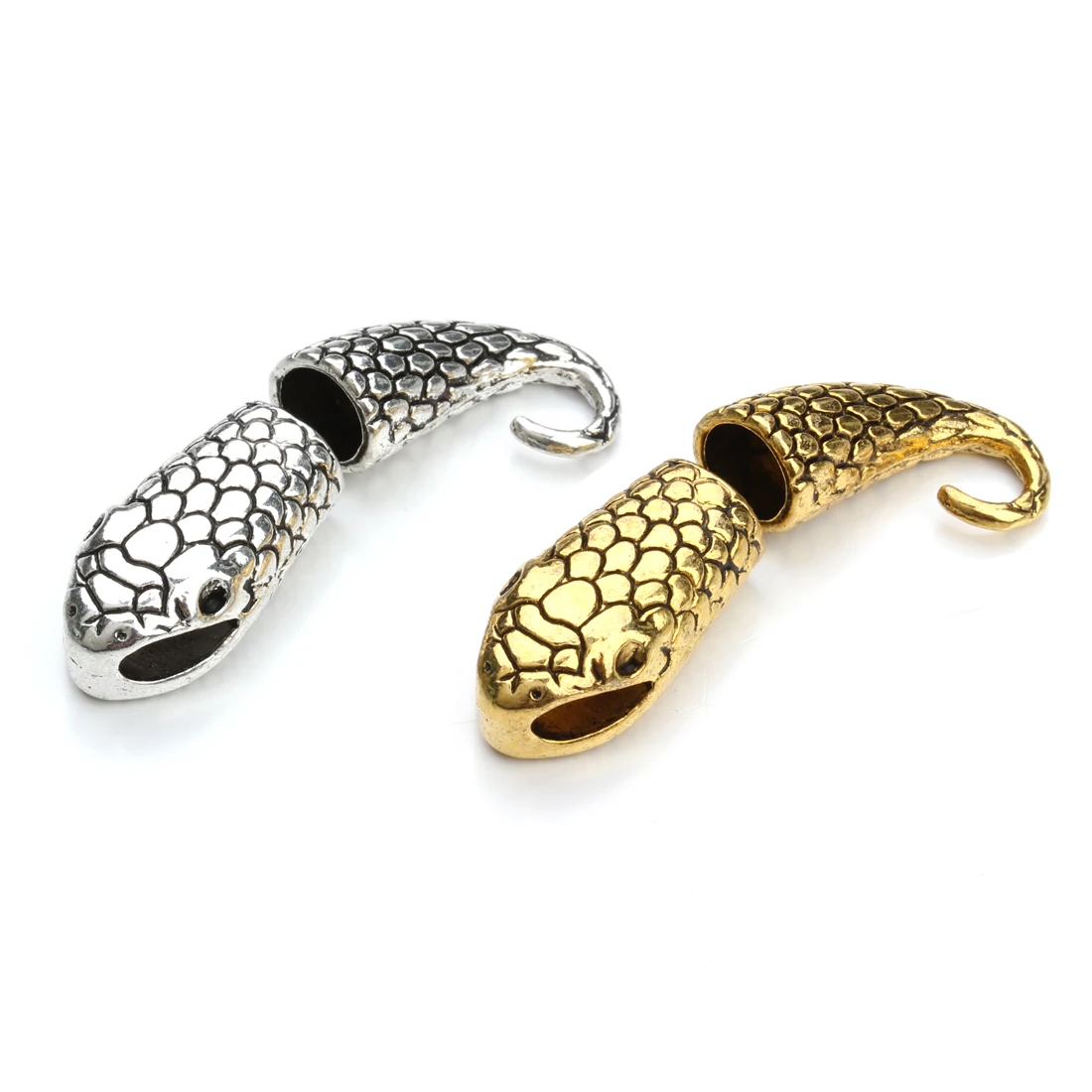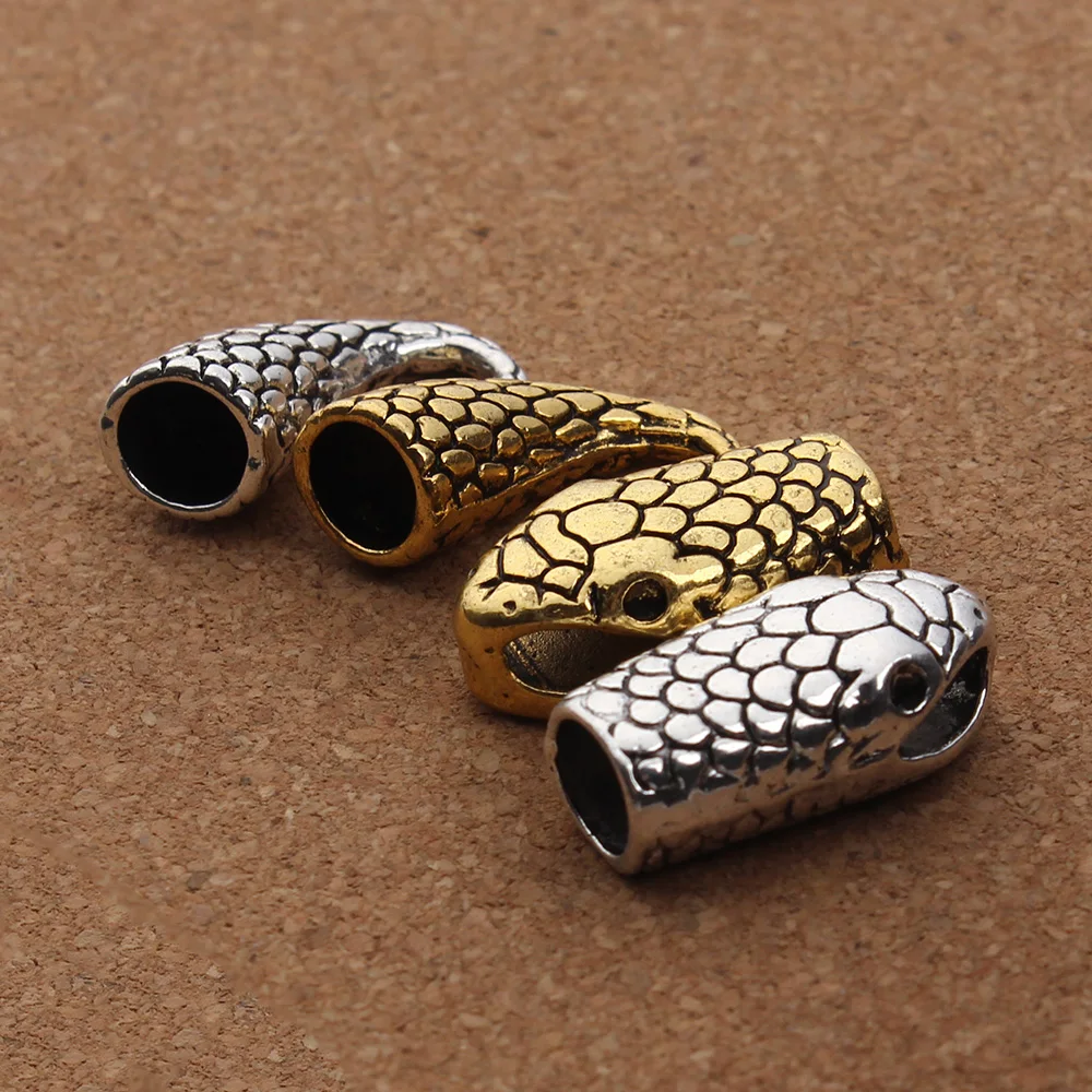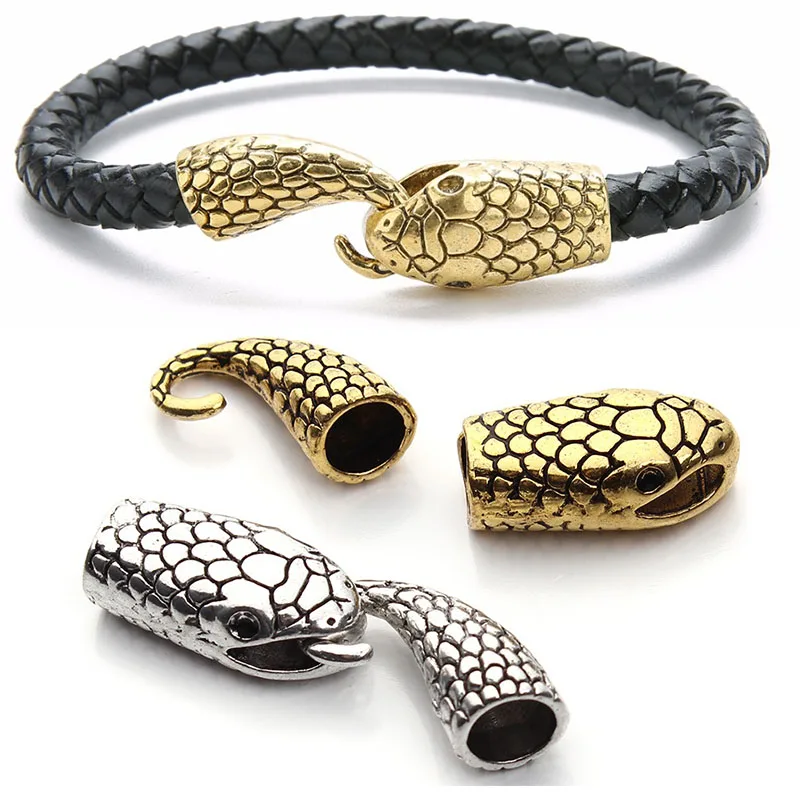Высококачественные застежки под старину с головой змеи золотого и серебряного цвета, Концевики для кожаного браслета, фурнитура для изготовления ювелирных изделий своими руками