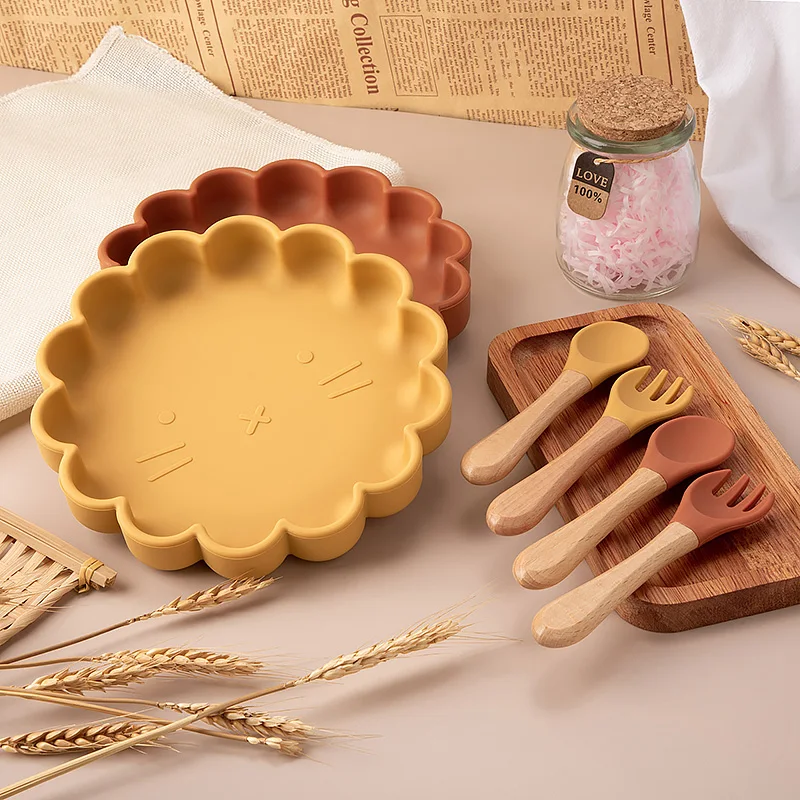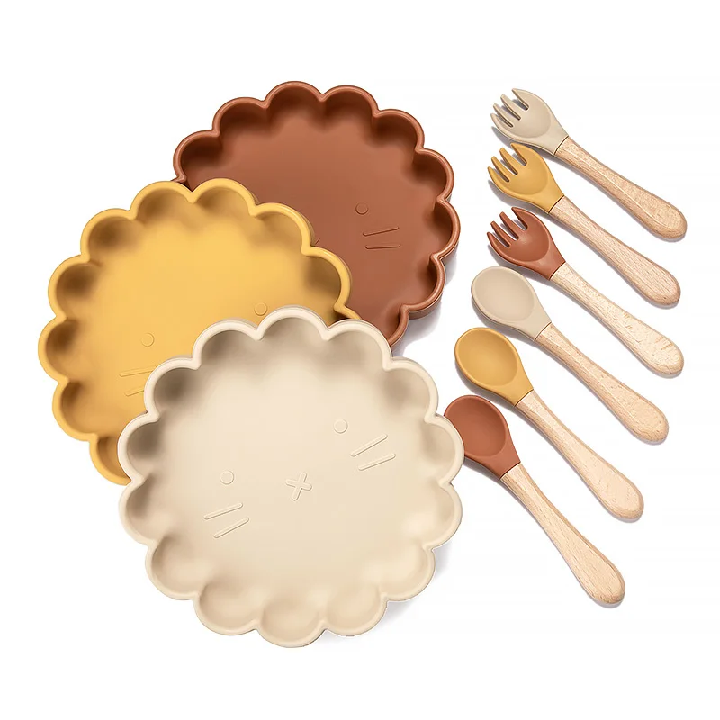 Детская силиконовая посуда, столовые чаши, мультяшная круглая посуда в форме льва, без бисфенола