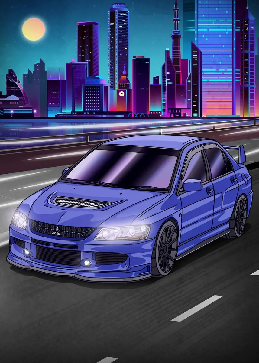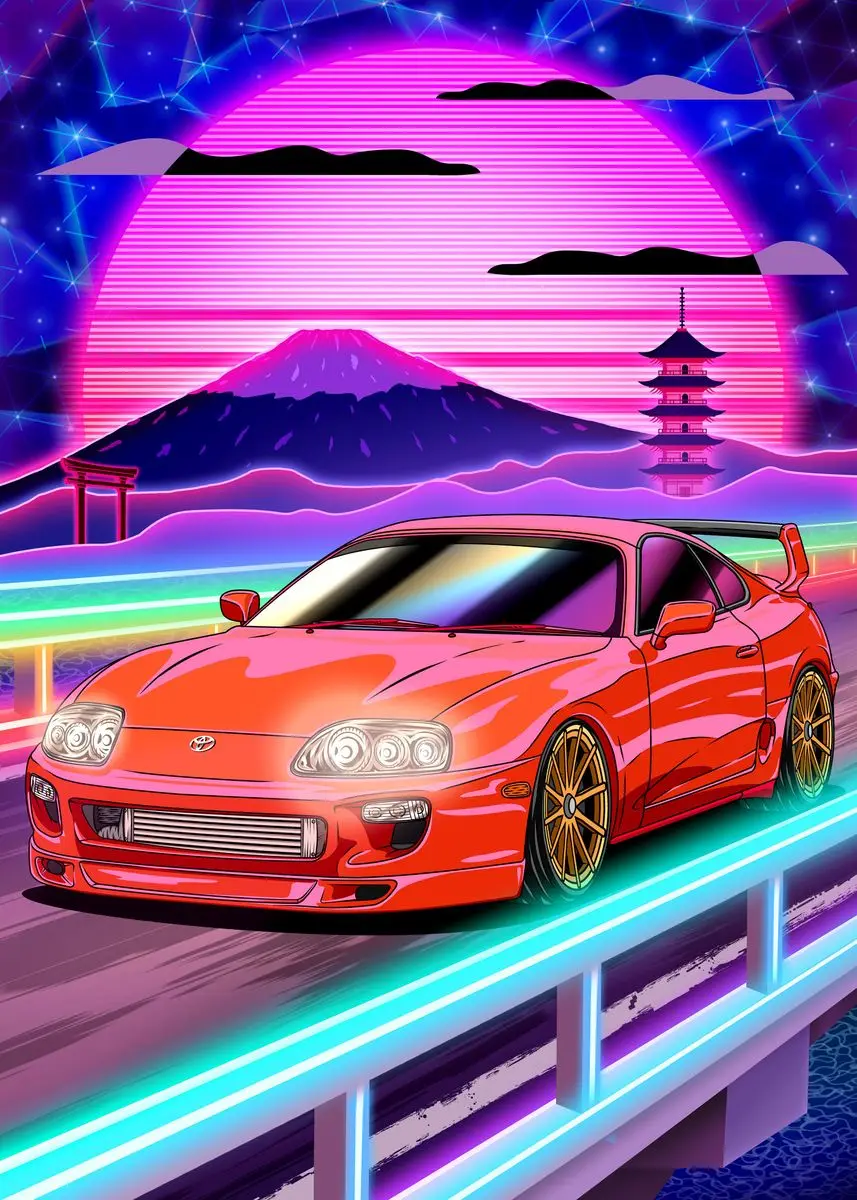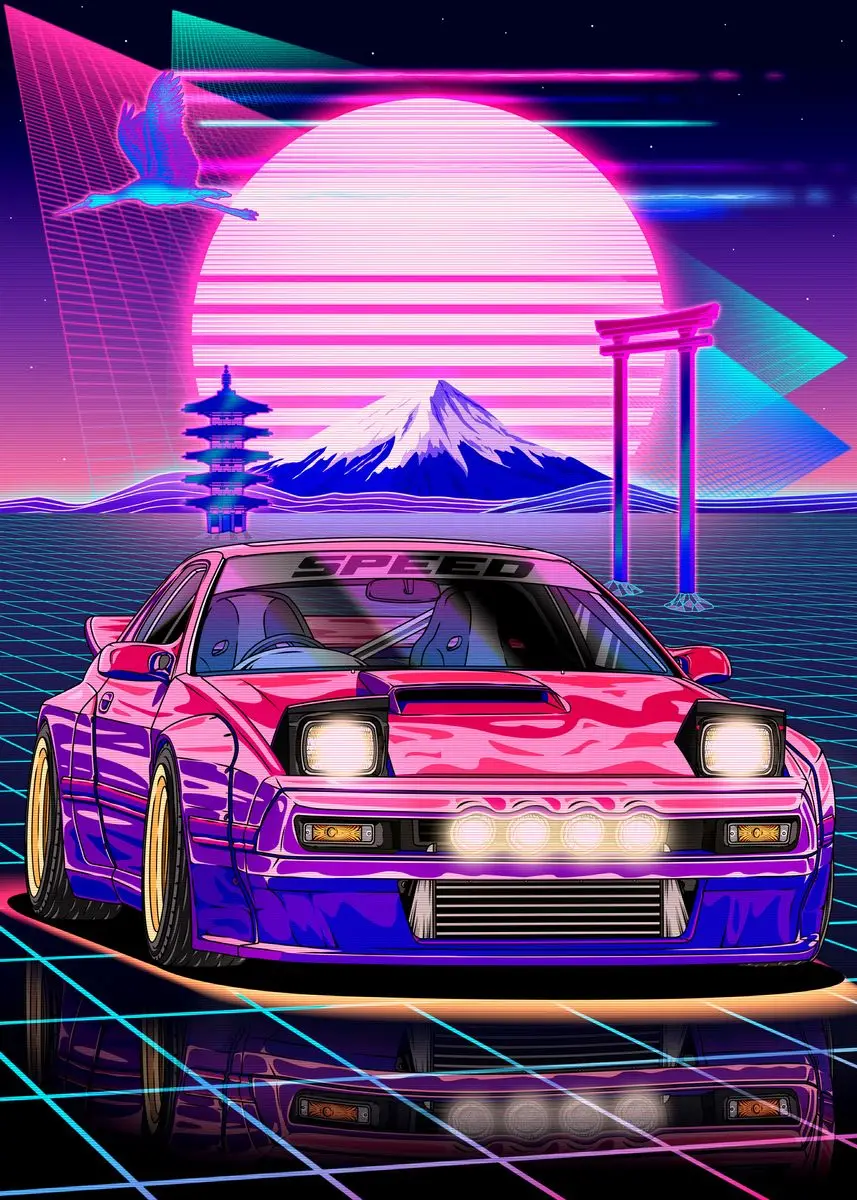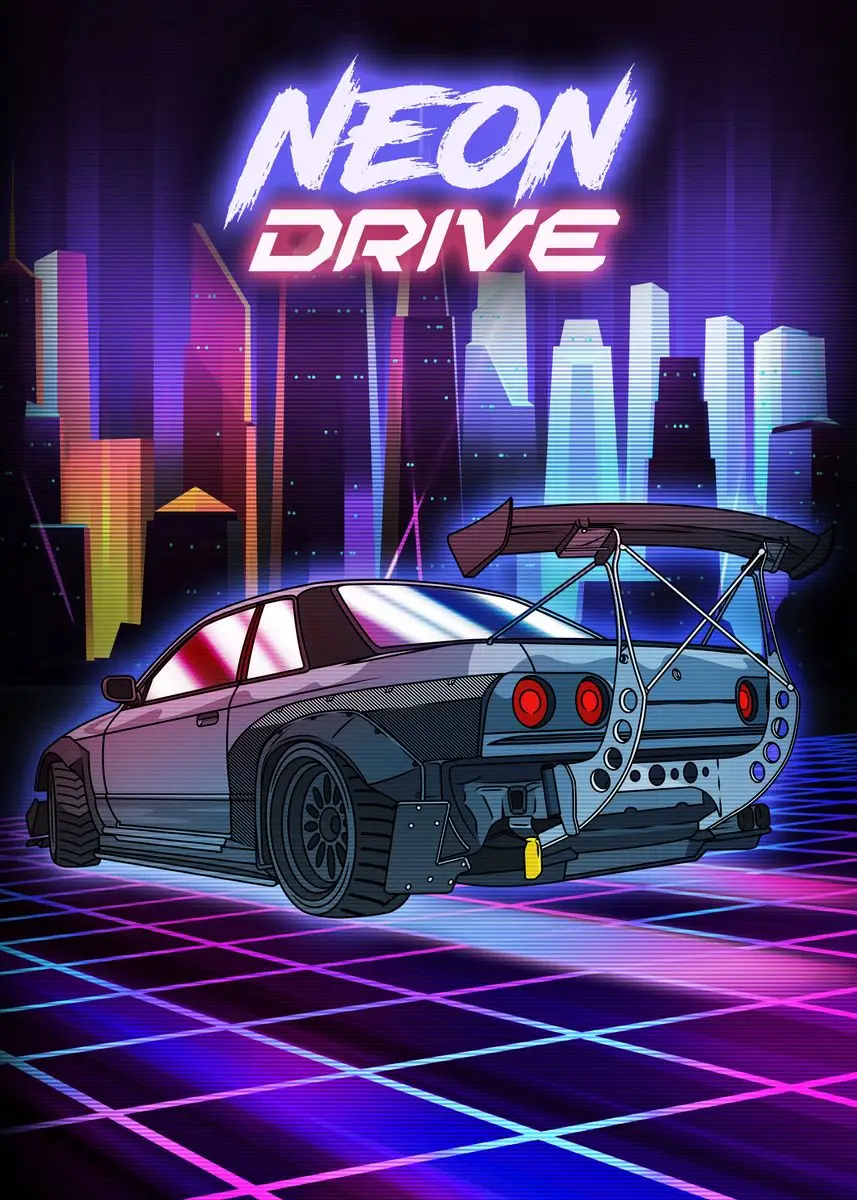 Ночной неоновый постер в стиле Паровая волна 80-х годов, городская ...