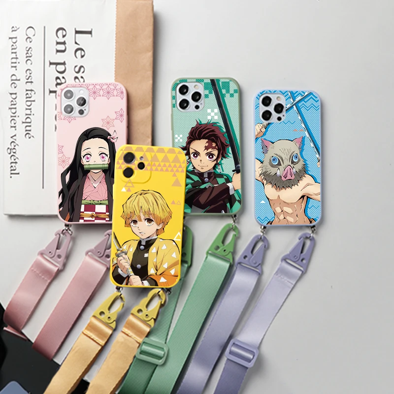 Чехол для Samsung Galaxy M32, A22, A12, A10, A21S, A32, A50, A51, A52, A71, A72, A70, S21 Ultra, S20 FE, S10 Plus, Demon Slayer, ожерелье, ремешок