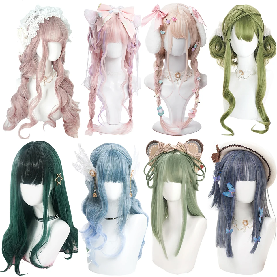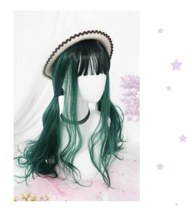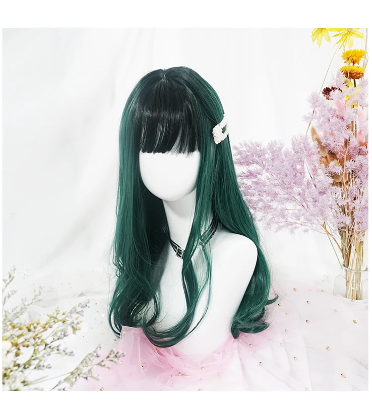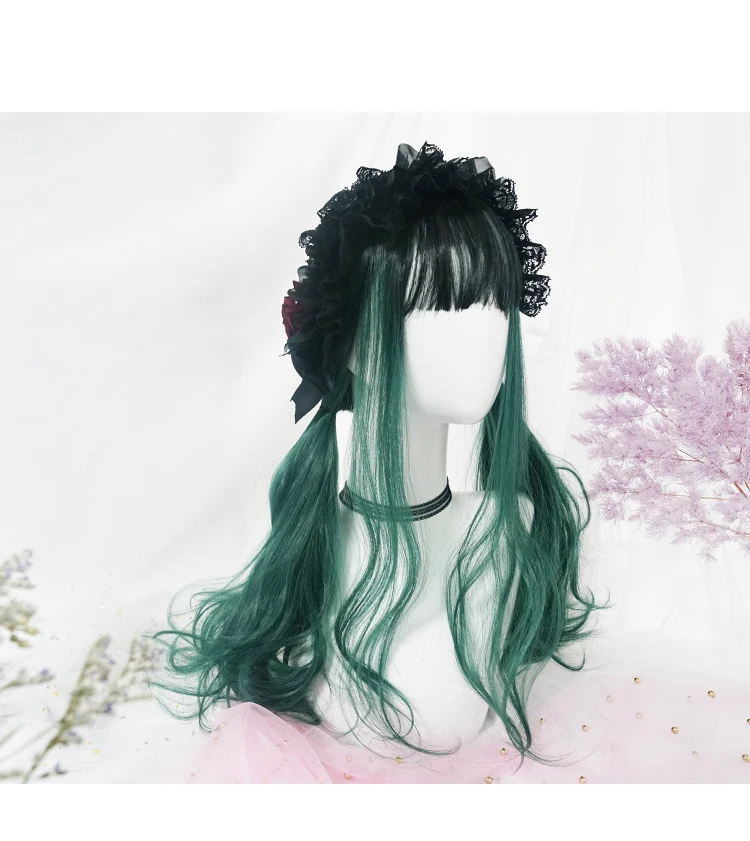 Синтетические длинные вьющиеся волосы TALANG, парики для косплея с челкой для женщин, темно-зеленые накладные волосы для вечеринок в стиле Лолиты, высокая температура