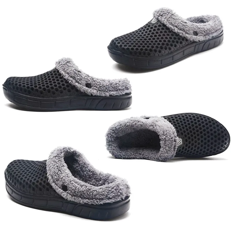 Новинка 2021 года; Зимние мужские тапочки; Меховые сандалии; Теплые пушистые плюшевые сабо для сада; Обувь без задника; Теплые тапочки для пар; Уличная обувь; Большие размеры 45