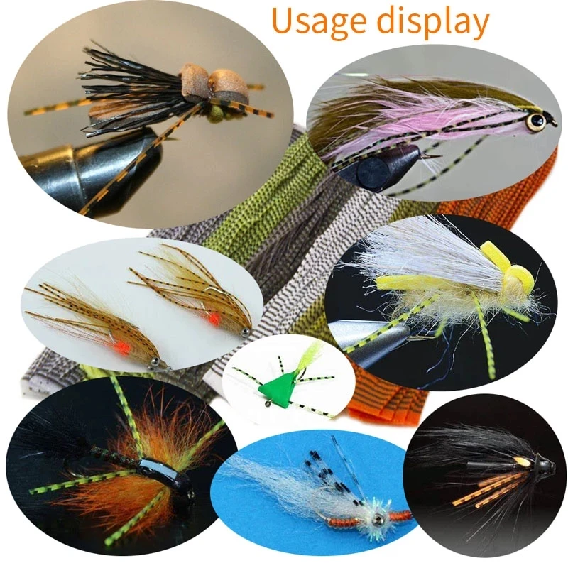 Применение: Для DIY spinnerbait buzzbait приманка для кальмаров приманка с юбкой, или завязывание летучей мыши, идеально подходит для добавления резиновых ножек для мух, что принесет пользу от дополнительного движения, также могут быть добавлены к Nymph, чтобы создать это дополнительное движение и стимулировать удар вызывает поведение. Этот материал идеально подходит для добавления шерстяных буггеров, узоров стальных головок и множества соленых мух, таких как charlies и Dells crabs.
