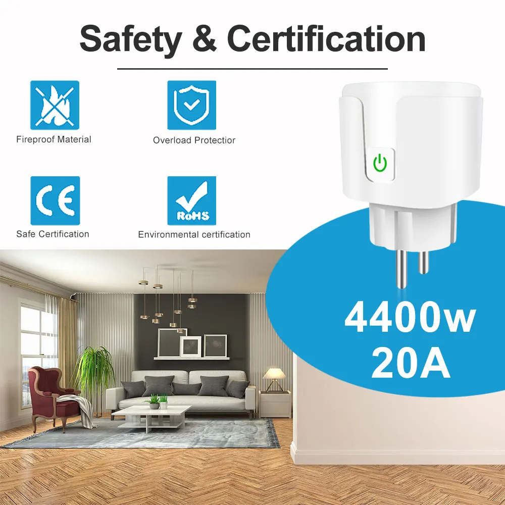 Смарт-розетка Беспроводная Tuya, 20 А, 4400 Вт, Wi-Fi, 220 В