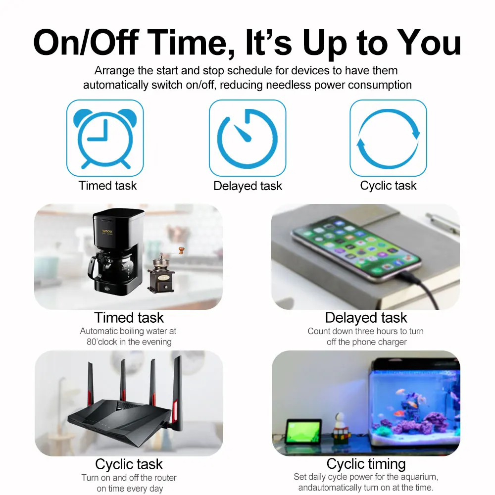 4.[Установить расписание]Организация графика запуска и остановки для устройств, чтобы они автоматически включали/выключали, уменьшая ненужное энергопотребление