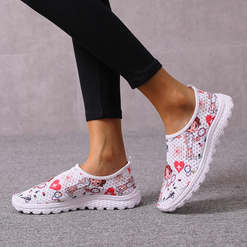 Кроссовки женские сетчатые без шнуровки, легкие сникерсы с принтом доктора, для косплея, плоская подошва, дышащие, летняя обувь для медсестер