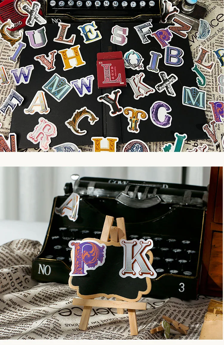 52 шт. в коробке, винтажные наклейки с английским алфавитом, s, мат...