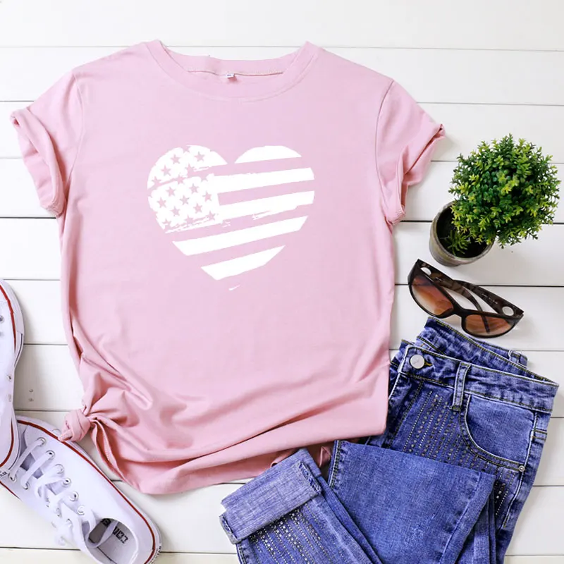 Футболка женская оверсайз с принтом сердечек, многоцветная рубашка с коротким рукавом, одежда в стиле Харадзюку, на лето