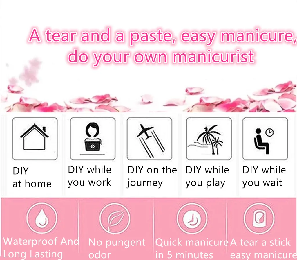 Советы: для лучшего эффекта использования, пожалуйста, поместите светящиеся наклейки для ногтей под сильный светильник (как солнечный свет) в течение 30 минут, чтобы поглощать светильник перед использованием.