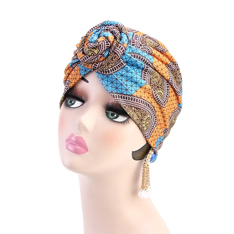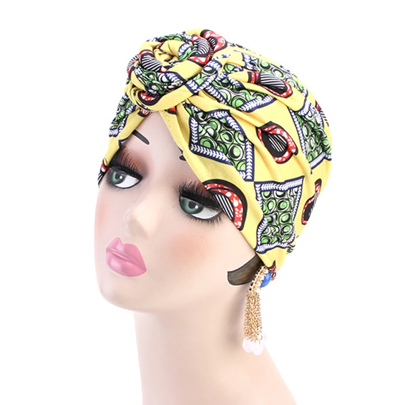 Африканский принт индийский арабский тюрбан шапка s женский узел головной убор хиджаб теплые шапки-банданы Кепка хиджаб стрейч мусульманская шапка