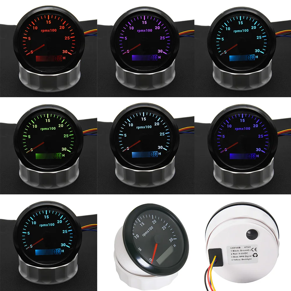 85 мм датчик тахометра дизельного двигателя Датчик Оборотов 0-3000 об/мин с цифровым песочником 7 цветов подсветка опционально 12 В 24 В