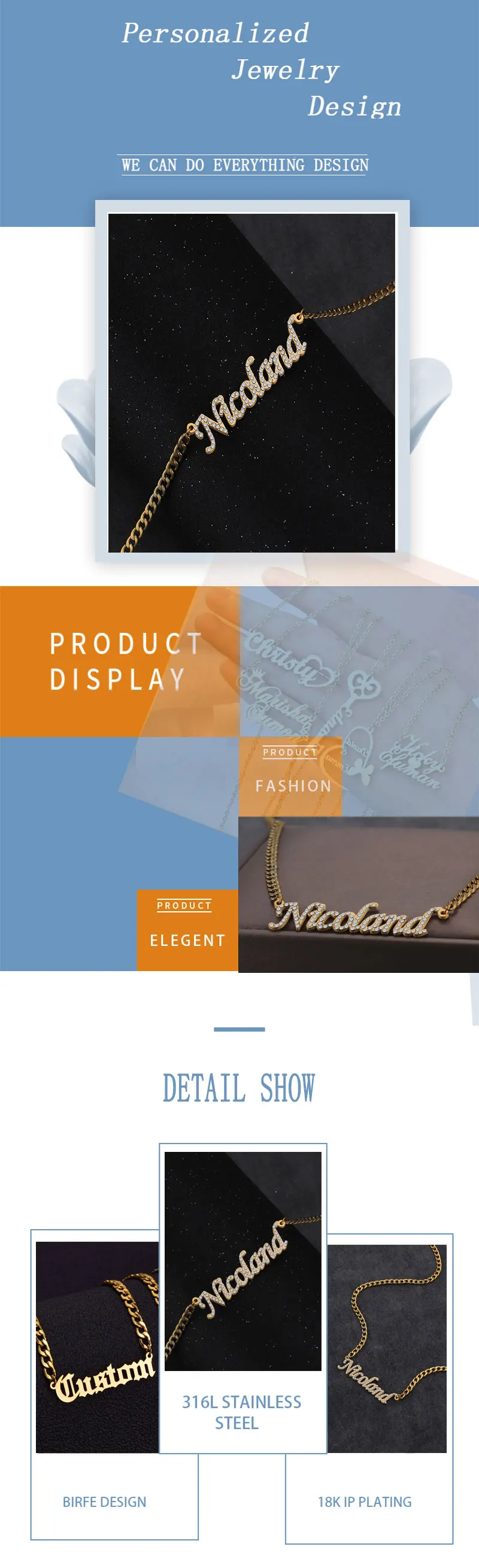 Индивидуальное индивидуальное ожерелье из нержавеющей стали с имене...