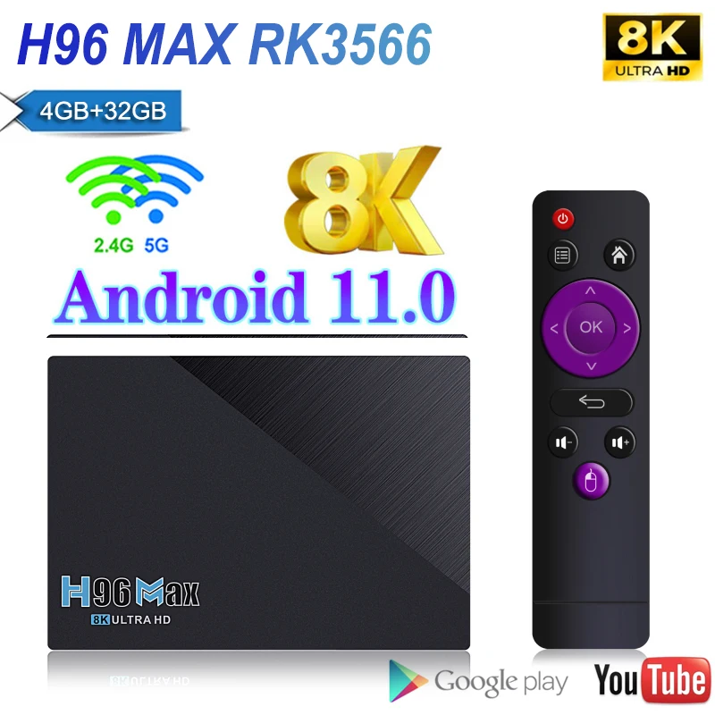 Приставка Смарт-ТВ H96 MAX RK3566, 4 + 32 ГБ, 1080p, 8K, 24 кс