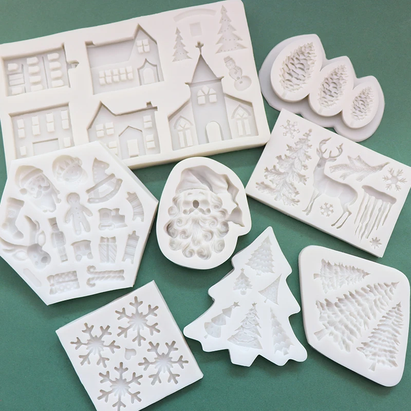 Силиконовые формы в виде снежинок, украшение для шоколадного венка, торта, инструменты для рождественской коллекции, снежный домик, сахарная мастика, сделай сам, формы для помадки
