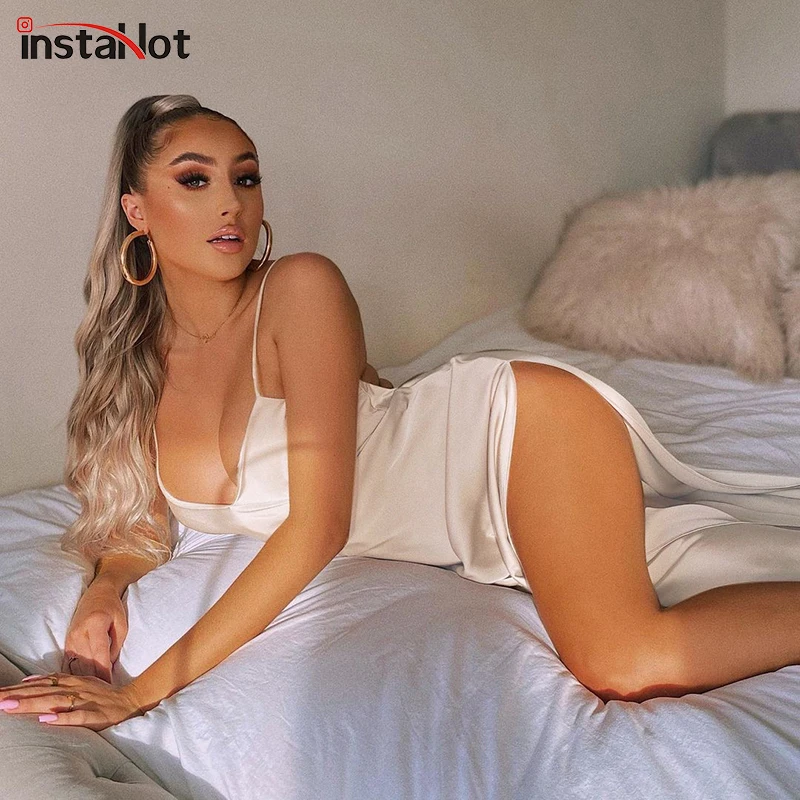 InstaHot женское Повседневное платье на тонких бретельках с открытой спиной, Клубные вечерние винтажные элегантные 2021 летние уличные сексуальные однотонные платья