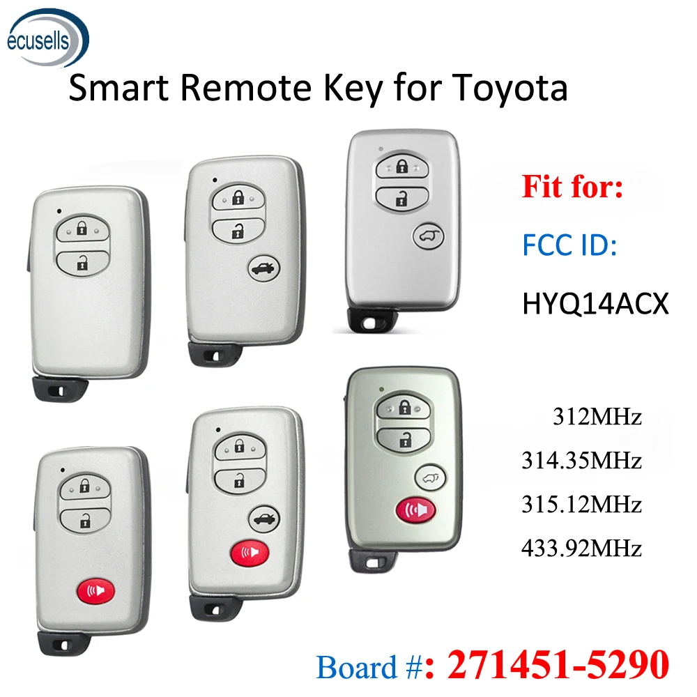 312314315433 МГц подходит для Toyota 4runner Prius C Prius V Venza Smart Remote Car Key 4D Chip 271451-5290 E FCC ID: HYQ14ACX
