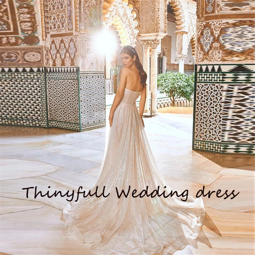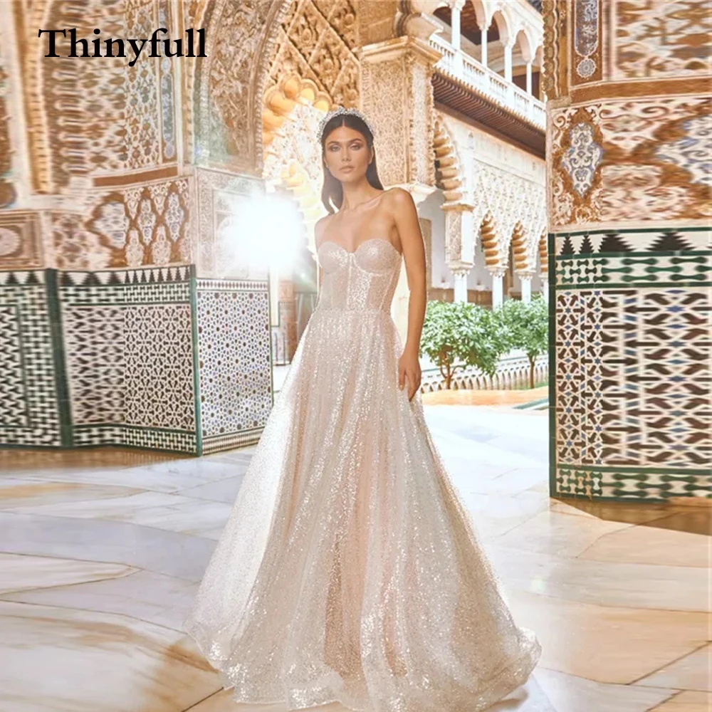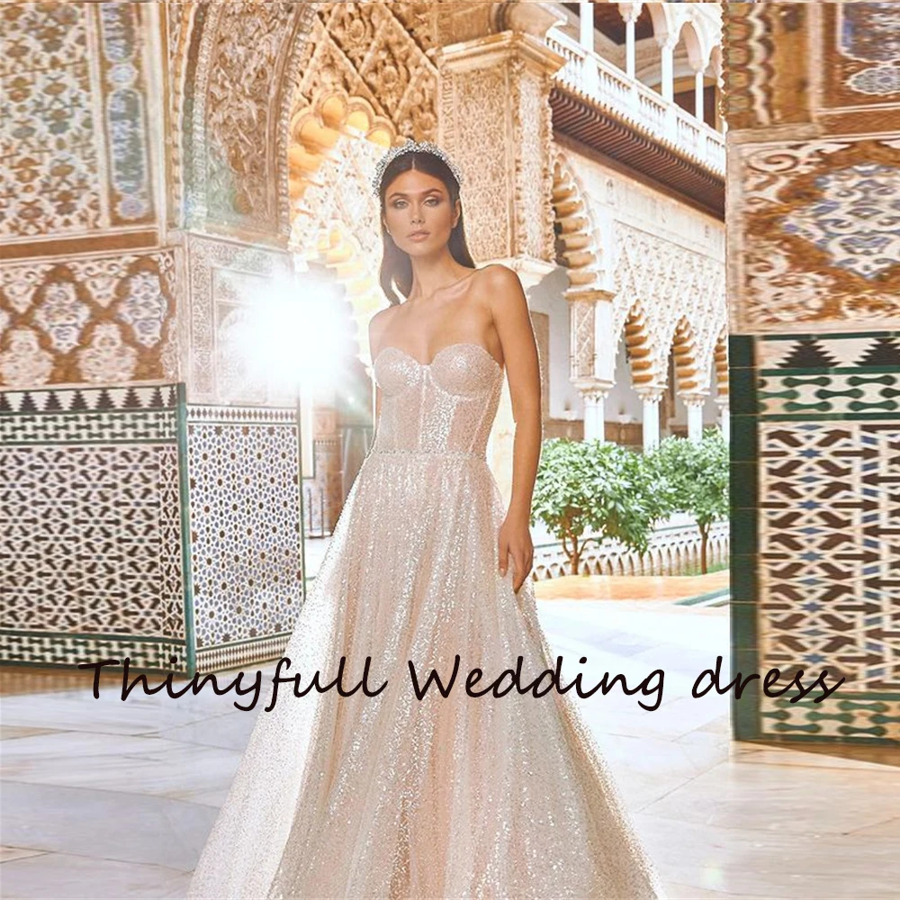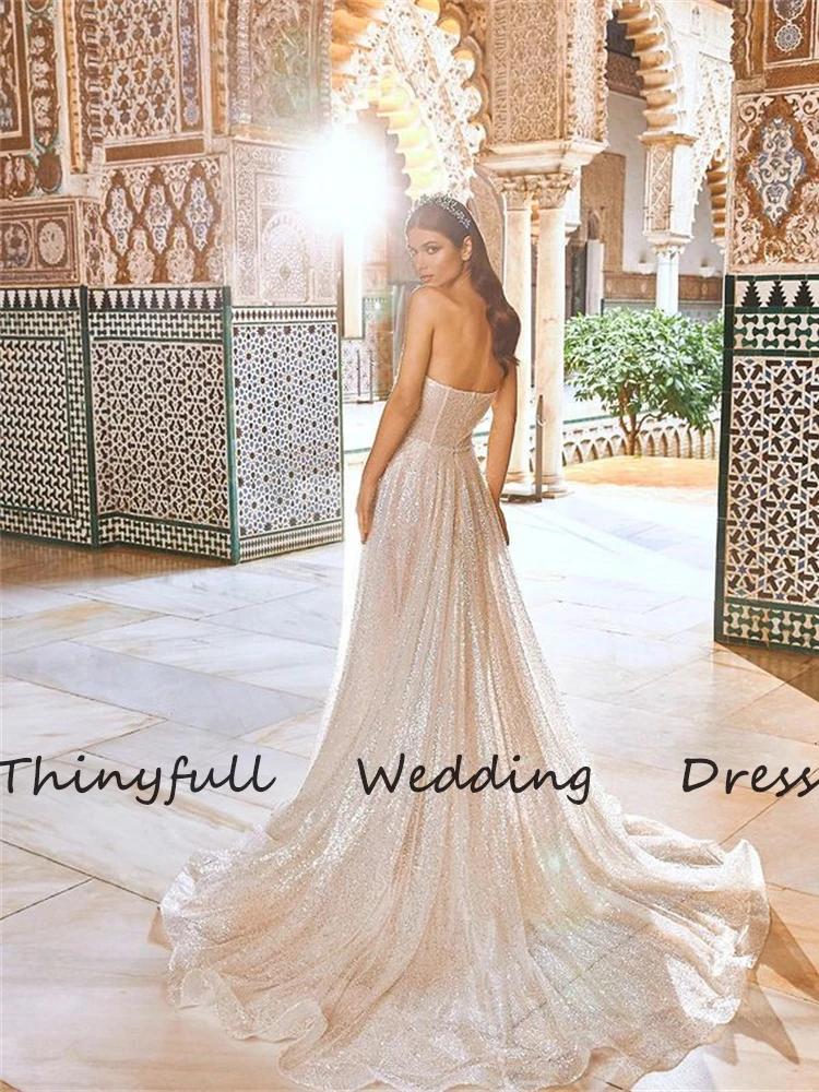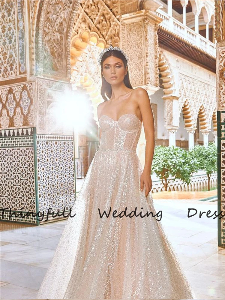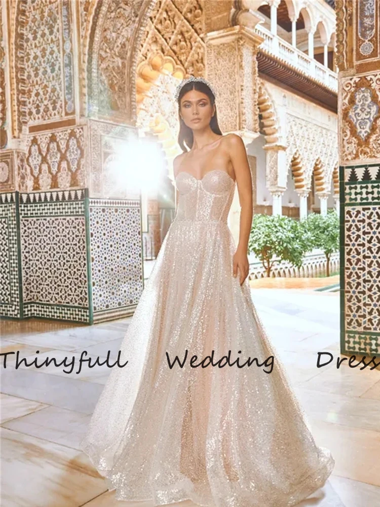 Длинные свадебные платья с пайетками без рукавов, блестящие свадебные платья с сердечком в стиле бохо, платья невесты, Пляжное ТРАПЕЦИЕВИДНОЕ свадебное платье по индивидуальному заказу
