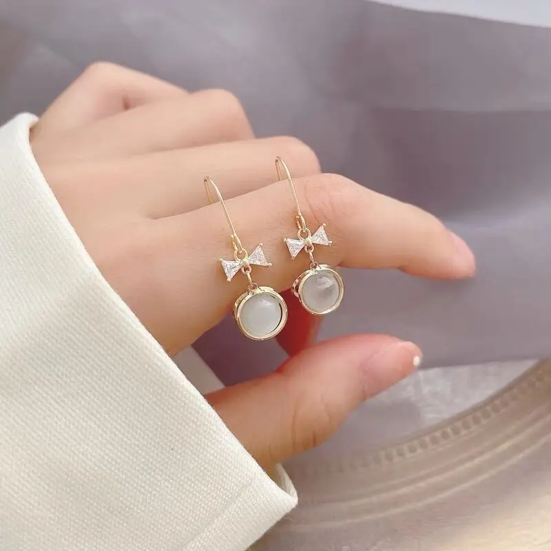 Корейские модные милые серьги-кольца с опалом для женщин и девушек летние изысканные циркониевые висячие серьги с бантом ювелирные изделия подарок Вечерние