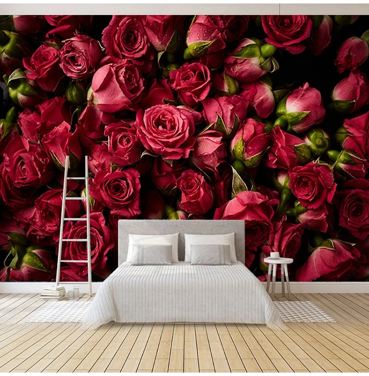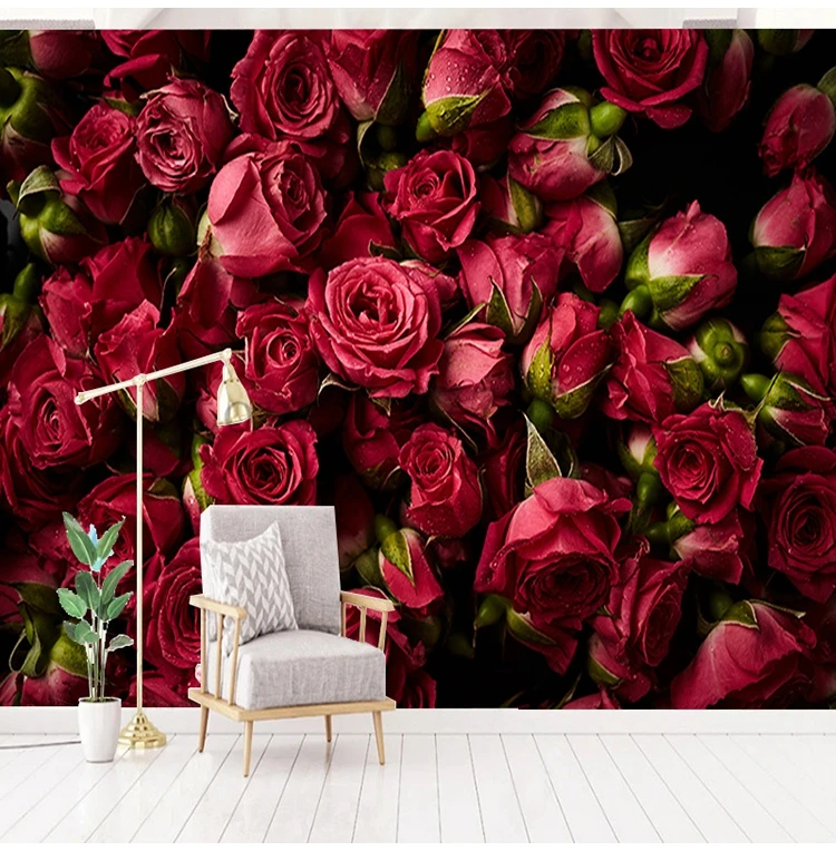 Фотообои в европейском стиле, красная роза, цветок, 3D фон, настенная роспись, гостиная, спальня, домашний декор, настенное покрытие