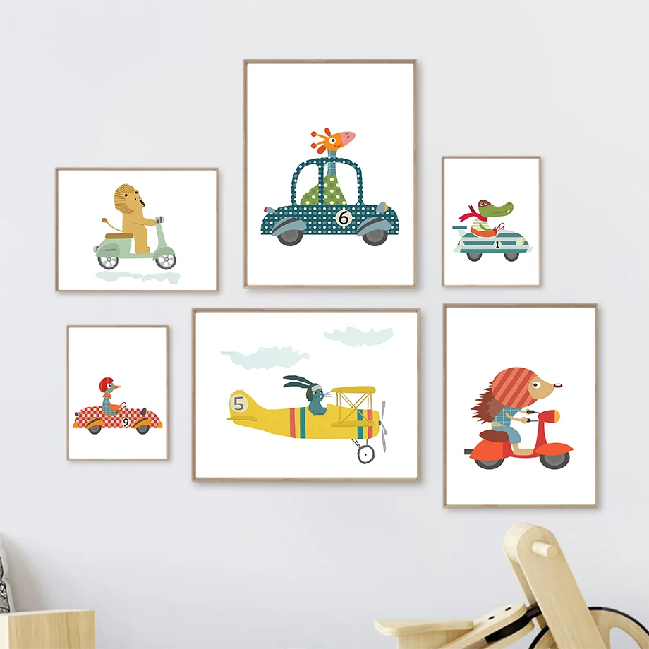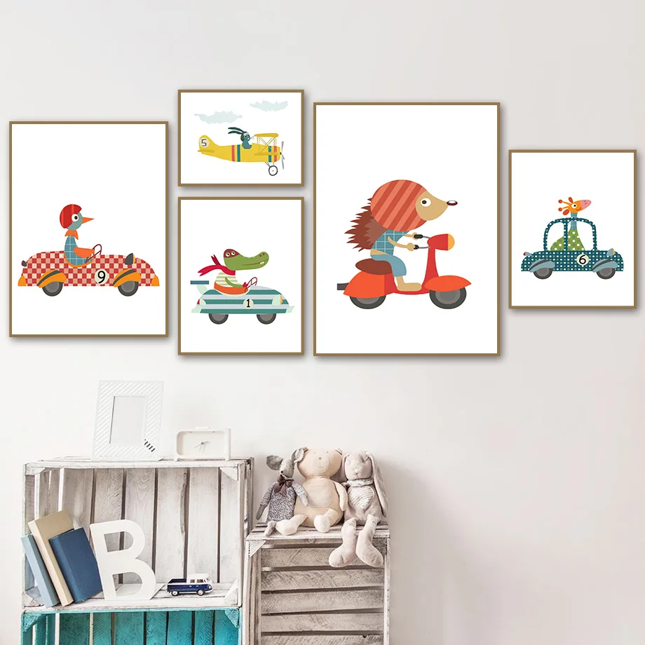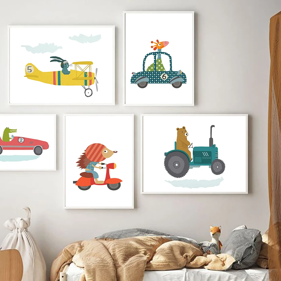 Автомобиль самолет мотоцикл трактор Ежик кролик настенная Картина на холсте скандинавские плакаты и принты настенные картины декор детской комнаты