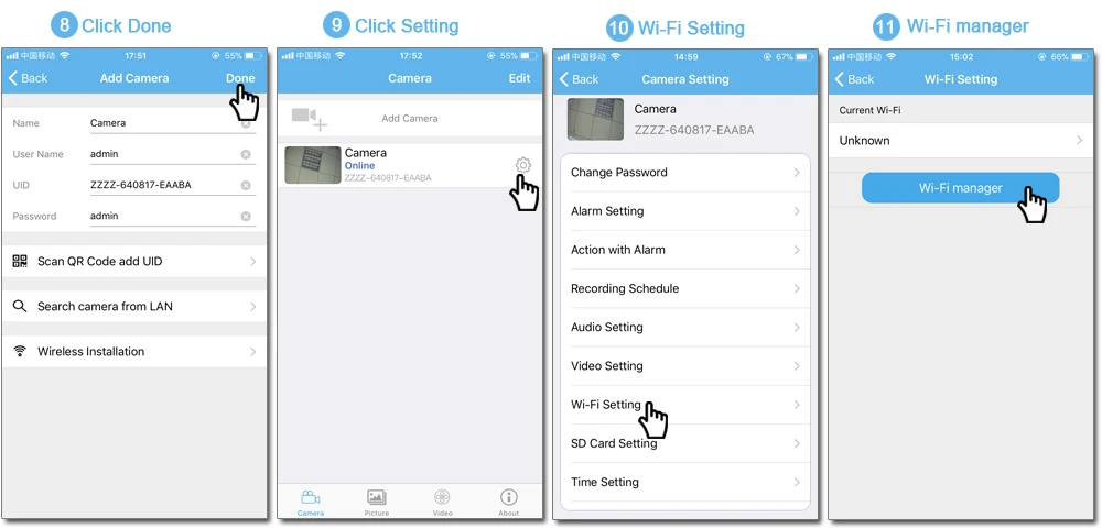 Удаленно просматривайте камеру через: бесплатно"Camhi"Приложение на вашем мобильном устройстве, бесплатно