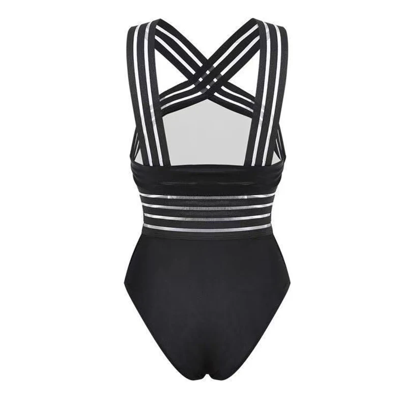 Пикантный Цельный купальник SINO.TREND с перекрестными бретелями, женский черный купальник-монокини с высокой горловиной, женские купальные костюмы, купальный костюм