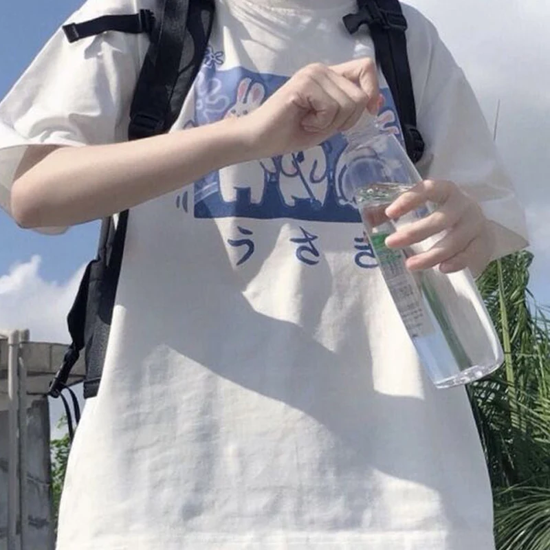 Футболка Uzzlang с милым кроликом из мультфильма милые девушки Хара...