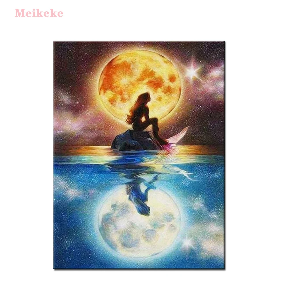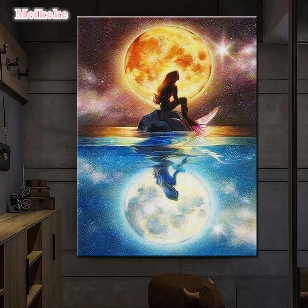 Новая вышивка стразами, Русалка под луной 5d алмазная картина полностью квадратные Стразы картина, Алмазная мозаика бисером