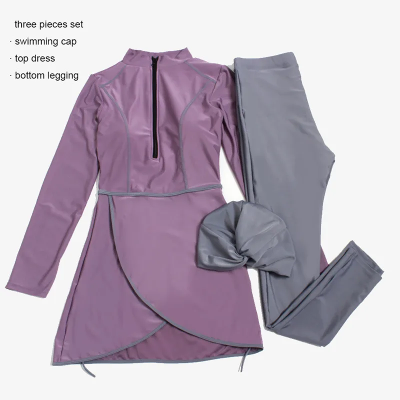 Женский Мусульманский купальник большого размера 2021, скромная одежда из Буркини, мусульманский хиджаб мусульманского стиля из 3 предметов, купальники с полным покрытием