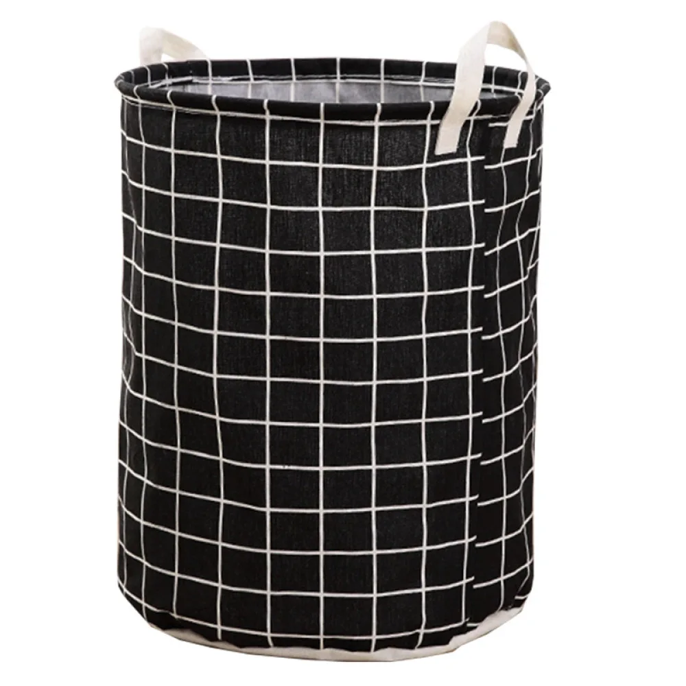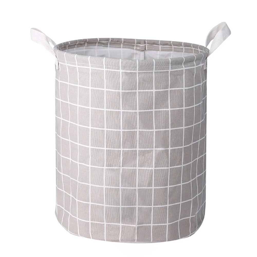 Корзина для грязного белья из хлопка и льна, складная, круглая, вод...